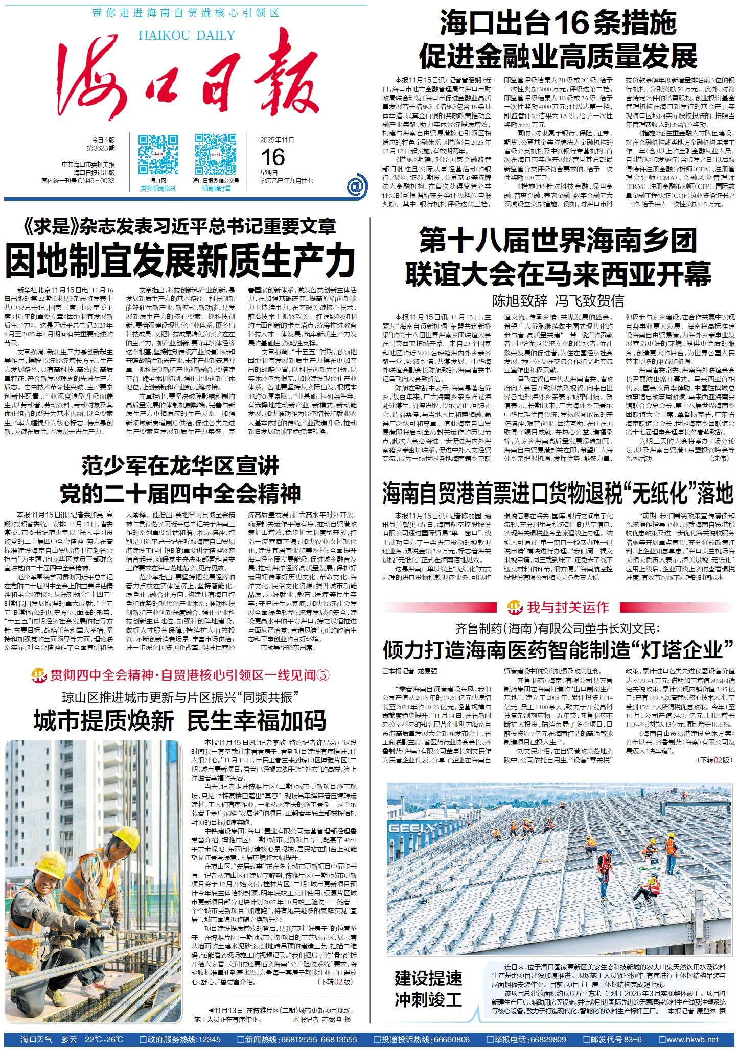 按照省委统一安排,11月15日,省委常委、市委书记范少军以“深入学习贯彻党的二十届四中全会精神 努力在高标准建设海南自由贸易港中扛起省会担当”为主题,向龙华区党员干部群众宣讲党的二十届四中全会精神。