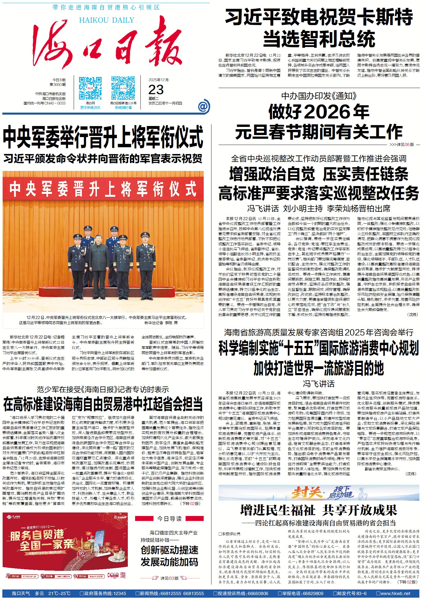 海口将深入学习贯彻党的二十届四中全会精神和习近平总书记在听取海南自由贸易港建设工作汇报时的重要讲话精神,全面落实省委八届八次全会部署,科学谋划封关运作后改革开放和高质量发展工作,努力在实现把海南自由贸易港打造成为引领我国新时代对外开放重要门户的战略目标中扛起省会担当。