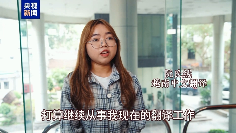 阮氏绒 越南中文翻译:打算继续从事我现在的翻译工作,因为我觉得翻译不仅是语言的工作,更多的是文化,两个之间的文化交流。