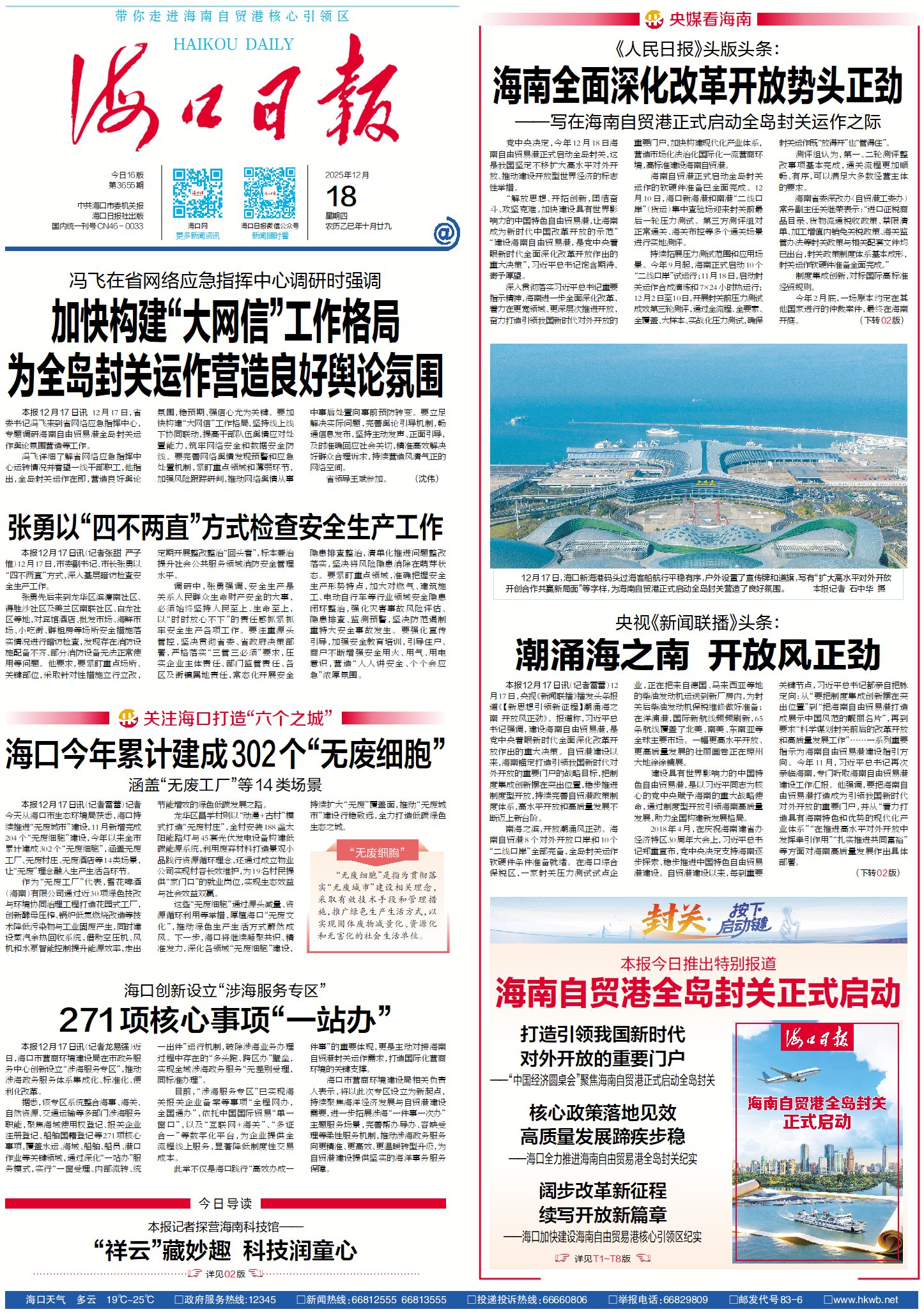 自2025年12月18日起,海南自由贸易港正式启动全岛封关。封关是海南自贸港建设新阶段的开始,封关后还将不断扩大开放领域,持续完善政策制度体系,努力打造引领我国新时代对外开放的重要门户。