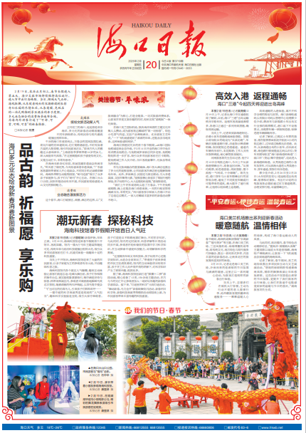 2月19日,农历正月初三,春节长假进入第五天。椰城天气正好,海风轻拂,从东坡老码头的宋潮雅韵到长影奇幻乐园的尽情狂欢,从各商圈、免税店的一站式购物到景区酒店的亲子度假,多元业态融合的消费场景遍布全城,为海内外游客打造了“可游、可赏、可购、可享”的新春体验。