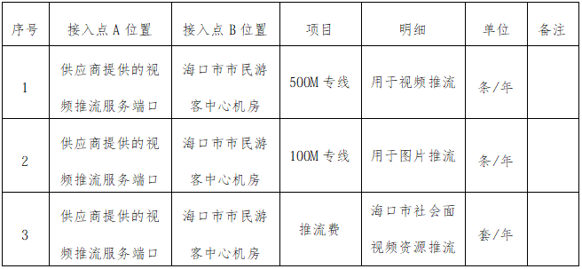 本项目供应商提供的视频资源推流服务,应尽量涵盖机场、火车站、港口、车站、商业综合体、农贸市场、餐饮酒店、娱乐场所、医院、加油站、景区景点、居民小区、背街小巷等具备互联网条件的已建监控系统,或由海口市政府投资建设的二类视频监控系统,供应商可提供的视频资源推流服务路数将作为本次公开遴选重要评分依据,需提供佐证材料。