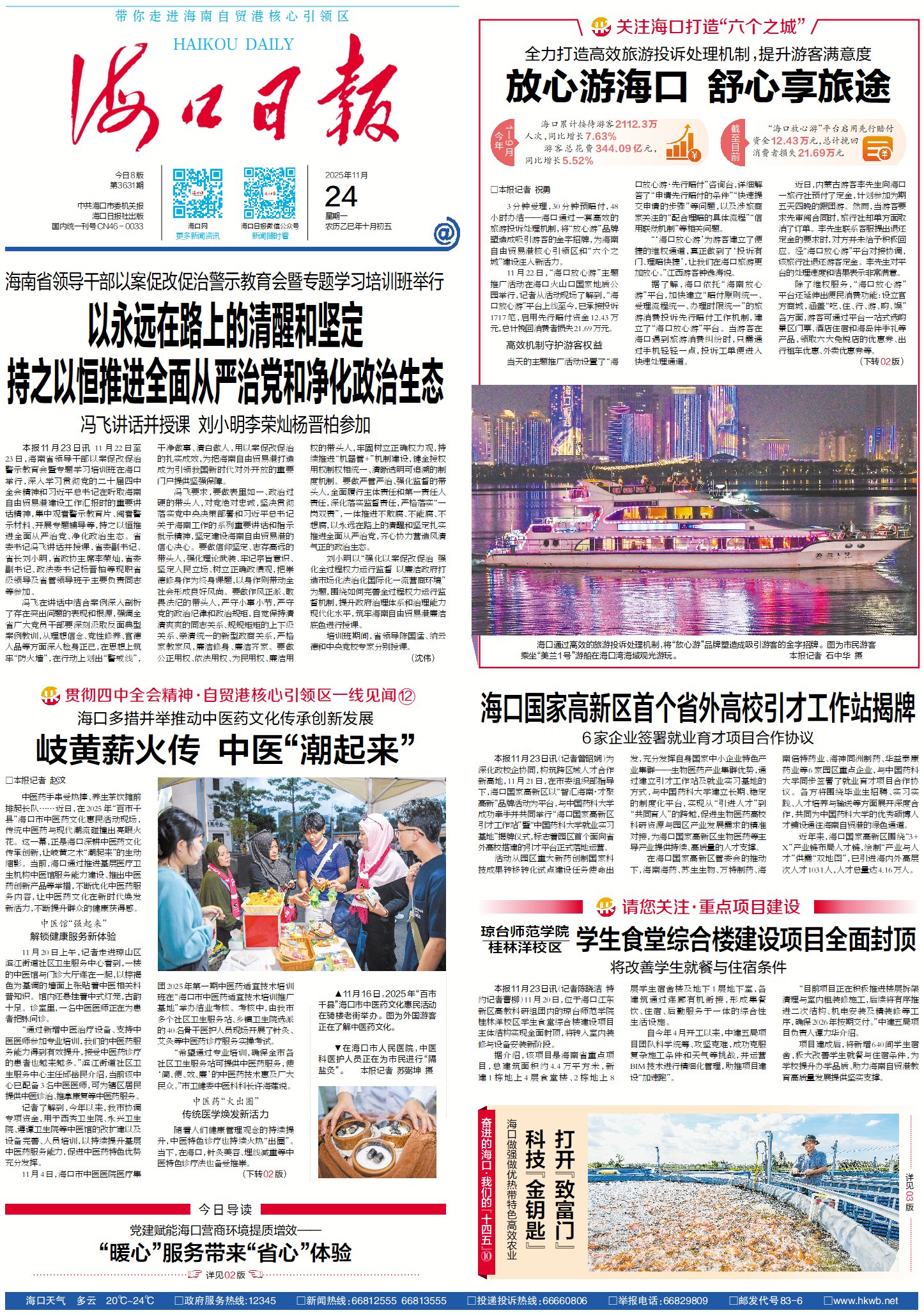 3分钟受理,30分钟预赔付,48小时办结——海口通过一套高效的旅游投诉处理机制,将“放心游”品牌塑造成吸引游客的金字招牌,为海南自由贸易港核心引领区和“六个之城”建设注入新活力。
