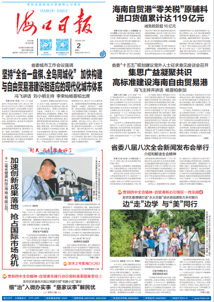11月30日至12月2日,市委举行读书班,以观看专题视频、听取主题报告、集中自学、研讨交流等方式,全面深入学习贯彻习近平总书记在听取海南自由贸易港建设工作汇报时的重要讲话精神。