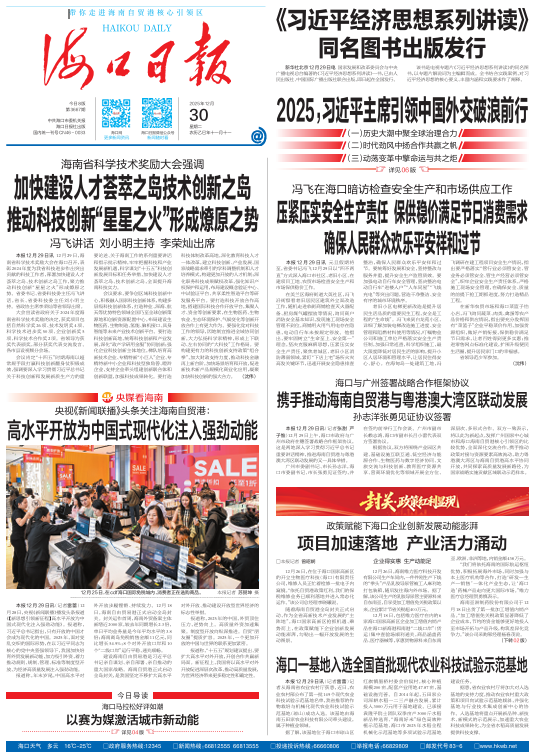 12月30日,市委经济工作会议召开,深入学习贯彻中央经济工作会议精神和习近平总书记在听取海南自由贸易港建设工作汇报时的重要讲话精神,贯彻落实省委经济工作会议部署,全面总结2025年全市经济工作,研究部署2026年经济工作。