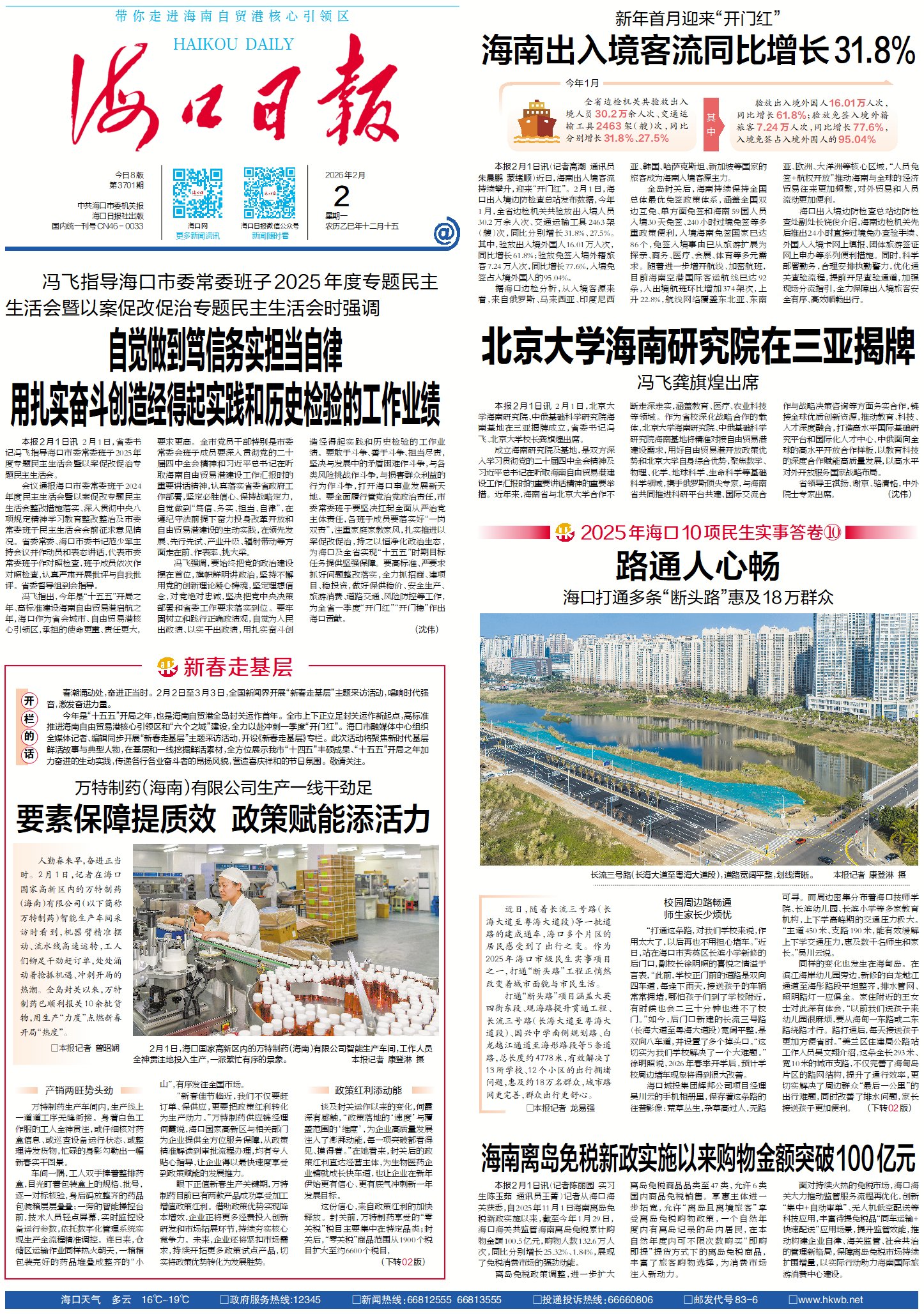 2月1日,省委书记冯飞指导海口市委常委班子2025年度专题民主生活会暨以案促改促治专题民主生活会。