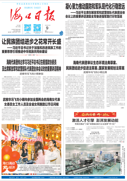 3月8日,十四届全国人大四次会议海南代表团传达学习习近平总书记在看望参加全国政协十四届四次会议的农工党、九三学社、医药卫生界、社会福利和社会保障界委员,以及出席解放军和武警部队代表团全体会议时的重要讲话精神。