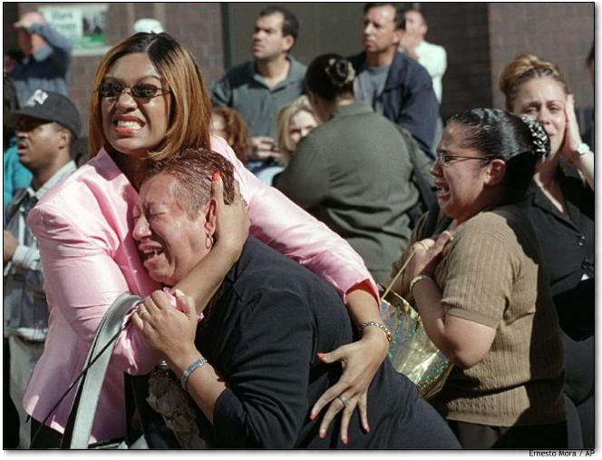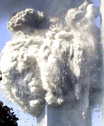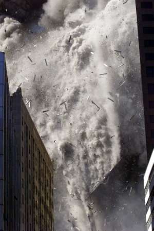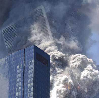 这时我又从远处看到,姐妹塔中的另一座已被击中,大概就在大楼的中央位置。有一段时间,我和其它大楼幸存者一样惊恐的望着姐妹塔上的熊熊大火。