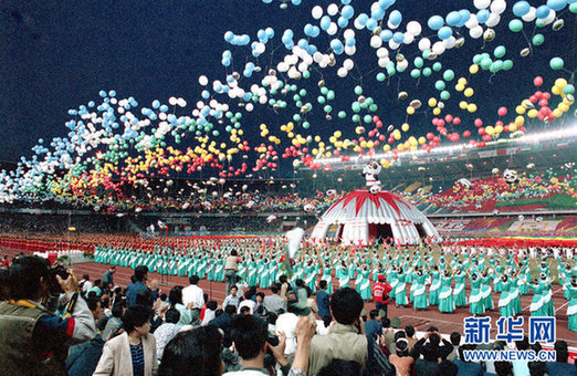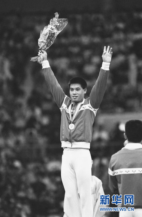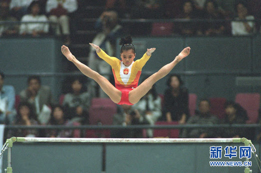 图为1994年10月4日,在日本广岛举行的第十二届亚运会上,中国体操选手莫慧兰在女子体操团体赛的高低杠比赛中获9.95最高分。莫慧兰在这届亚运会上共获得女子团体、跳马、高低杠、平衡木和自由体操5枚金牌。在广岛亚运会体操竞技场上,中国选手夺取了14个项目中的13枚金牌,刮起了强劲威猛的“中国旋风”。新华社发