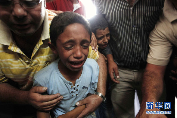 这是两名巴勒斯坦男孩在约旦河西岸靠近希伯伦的村镇出席父亲的葬礼。他们的父亲是未经许可进入东耶路撒冷时被以色列边境警察开枪打死的。(2010年10月3日摄)新华社发