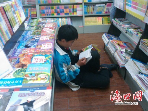 20日上午,记者在明珠广场书店里注意到,有不少小朋友们席地而坐,认真阅读着手里的书。记者看到他们几乎人手一本漫画书、侦探书、童话书。在海口七中读初一的小伟告诉记者,现在同学当中最流行看《恐怖骷髅头》、《魔血》和《鬼吹灯》之类的小说。另一个正在看书女孩告诉记者,她今年读初一,班上的大部分女生都喜欢看言情小说,因为里面的爱情故事很感人的。自己周末的时候就会来这里看这类书籍。