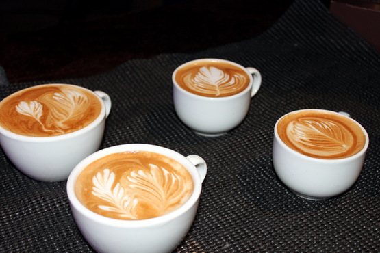 咖啡拉花表演。(记者 张俊其 摄)