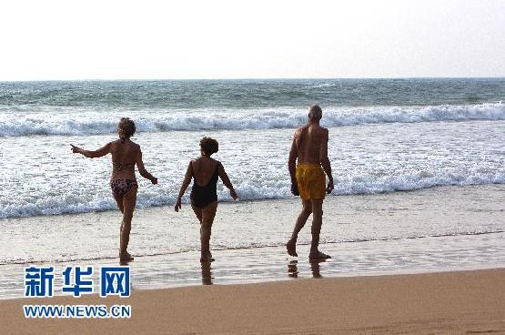 2月26日,在斯里兰卡首都科伦坡以南约60公里的本托特,三名外国游客在海滩散步。(作者:刘咏秋)