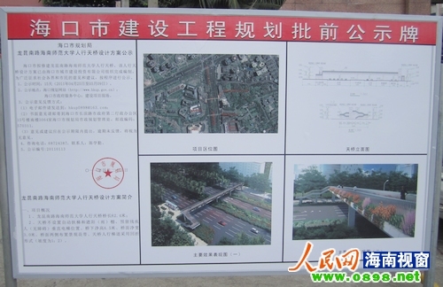 龙昆南路海南师范大学人行天桥设计方案公示牌