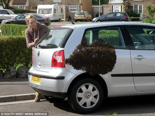 “邻居到家里告诉我蜜蜂包围了我的车,我简直不能相信,那场面实在令人难以置信。在我的车上没有任何蜜蜂可以吃的东西,但它们好象很喜欢待在油箱盖附近。”梅丽莎说。