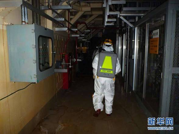 这张由日本东京电力公司提供的照片显示,东电工作人员5月18日在福岛第一核电站2号机组核反应堆建筑内进行调查。 东京电力公司18日宣布,当天首次派遣4名工作人员进入福岛第一核电站2号机组建筑进行调查。这是3月15日2号机组安全壳附近的压力控制池传出爆炸声以来,工作人员首次进入2号机组建筑。据透露,此次调查主要是为了掌握建筑内部的放射线量和尘埃中的放射性物质量,确认设备是否出现破损。工作人员从9时24分开始,在2号机组建筑内调查了约15分钟,4人受到的辐射量在3.33至4.27毫希沃特之间。 新华社发