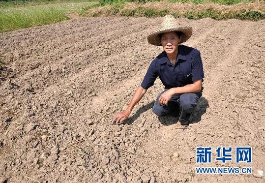 5月29日,在江西德兴市银城镇小吴园村,农民面对干旱的田地束手无策。针对江西省严重旱灾,国家减灾委、民政部于当日13时紧急启动国家四级救灾应急响应,派出工作组赶赴灾区,查看灾情,协助开展救灾工作。据江西省民政厅报告,截至5月29日12时统计,近期严重干旱灾害已造成生活困难需政府救助人口111.8万人。新华社发(胡敦煌摄)