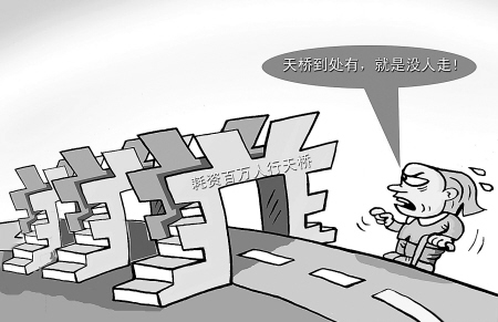多处耗资数百万建设的人行天桥竟沦为摆设,市民的抱怨也是一种民意的表达,不满意也折射出政府部门在公共设施建设中偏离了民意的方向。