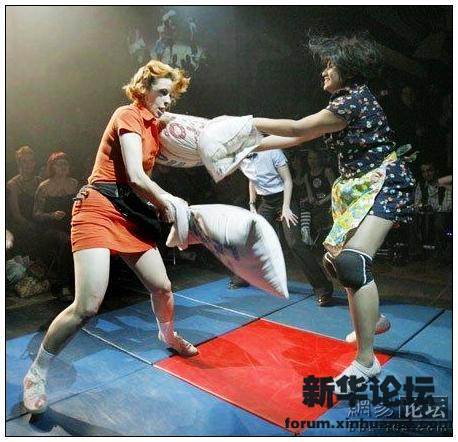 3、主妇们的枕头大赛:生活中总有无限的乐趣可供人们去挖掘。2007年1月,“枕头大战联盟”就在加拿大多伦多举行了一场激烈的淘汰赛,选手中的胜者将到纽约挑战枕头大战的冠军头衔。