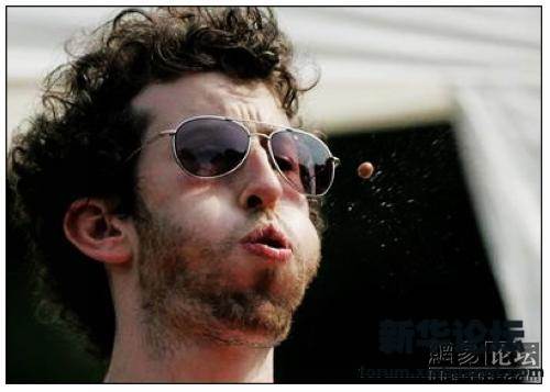 6、吐樱桃核比赛:德国每年一次的吐樱桃核比赛于1974年开始举办,参赛者要比赛谁的樱桃核吐得远。比赛共分为青年组、女子组和男子组三个级别,赛会纪录为男子组21.71米,女子组15.24米。