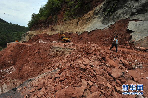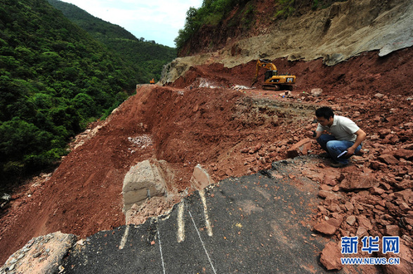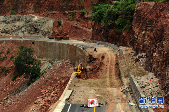 7月8日拍摄的新公路一处坍塌点。新华社记者陈海宁摄
