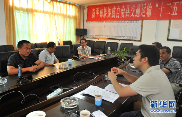 7月8日,新平县交通局局长及公路施工、设计、监理等人员接受新华社“中国网事”记者采访。新华社记者陈海宁摄
