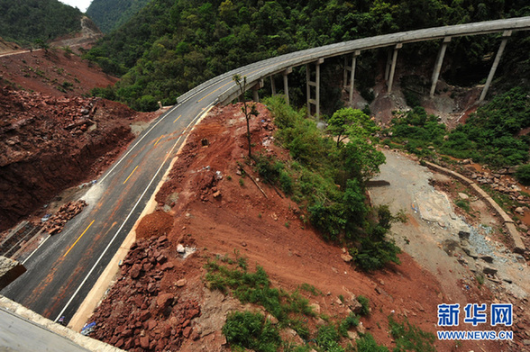 建设在地质环境复杂的山体中的新公路(7月8日摄)。新华社记者陈海宁摄