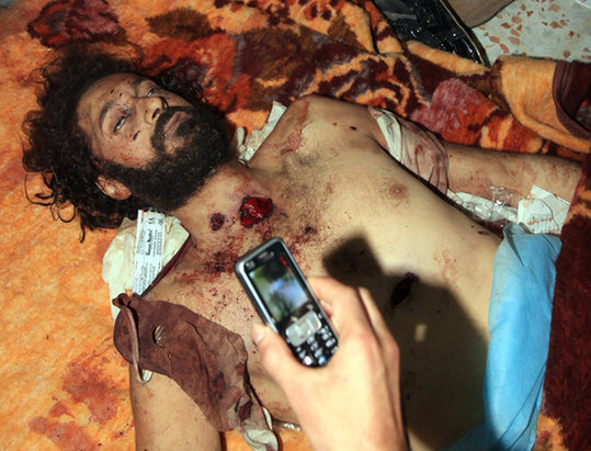 10月20日,卡扎菲之子穆塔西姆(Mutassem)的遗体。