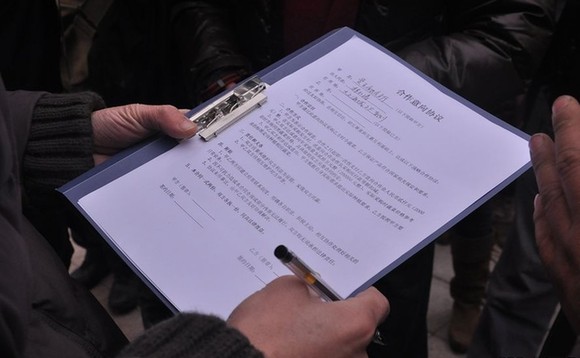 郑州汉城之约餐饮管理有限公司总经理林红涛签约买萝卜哥的红薯。林红涛打开早已拟好的合同,签字,“萝卜哥”卖了20万的货。图为合同。