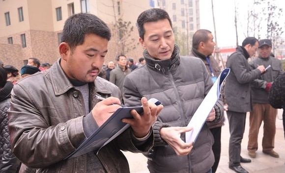 图为“萝卜哥”现场签约卖红薯。