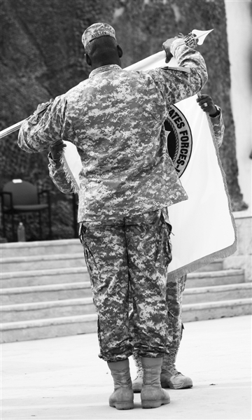 2011年12月15日,伊拉克巴格达,驻伊美军将美军伊拉克战旗卷起、封存。
