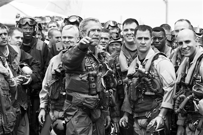 2003年5月,伊战正酣,布什会见林肯号航母的全体成员。
