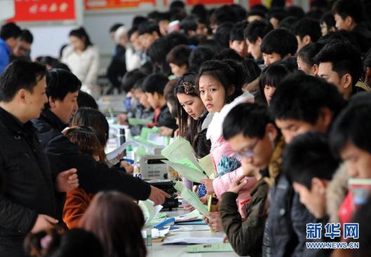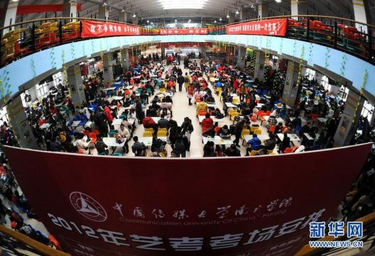 当日,中国传媒大学南广学院2012年艺术类招生现场报名考试开始举行,学校各艺术类本科专业计划招生1840人。在南京的学校本部考点,来自各省的上万名考生和家长挤满报名处。随着近日南京部分高校艺术类招生校考的现场报名考试拉开帷幕,数以万计的考生带着艺术梦想从各地前来赶考,相关高校的校园随处可见考生排成的长队和拥挤的人群。新华社记者孙参 摄