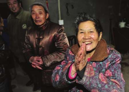 周婆婆双手合十感谢好心人的关心 摄影吴小川