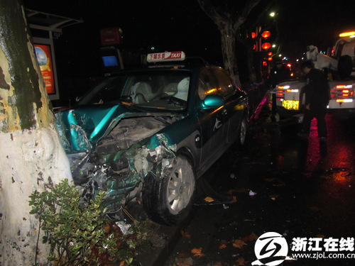 他告诉记者,他和朋友是从上海来杭州旅游的,住在西溪湿地附近。凌晨,一行4人从曙光路附近玩好打车回酒店,在路口突然冲出来一辆宝马,被撞后,失去控制的出租车冲上了绿化带,直到撞上了梧桐树,才停下。