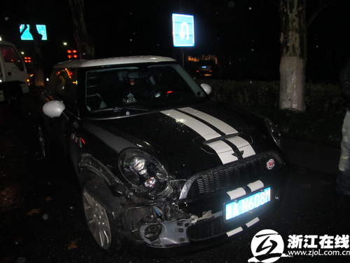 海口网消息1月30日 29日凌晨1时30分许,飘着小雨,(浙江)杭州市曙光路上,一辆北向南行驶的宝马MINI车突然掉头,撞上一辆由南向北正常行驶的出租车,出租车被撞飞,受损严重,车内多人受伤。