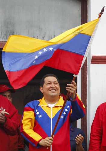 查韦斯在挥舞委内瑞拉国旗