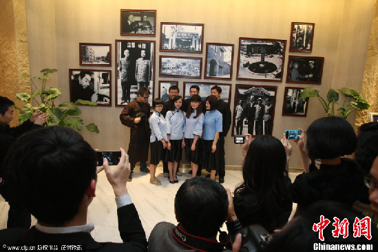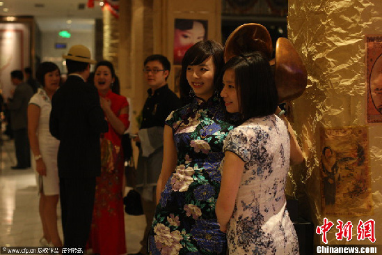 2012年4月7日,重庆,“我爱民国范”复古派对在中山四路某公馆华丽上演。市民们穿着民国时期的服饰在派对上合影。唐浩 摄 图片来源:CFP视觉中国