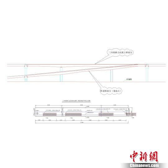 哈尔滨塌桥事故的平面示意图。 哈尔滨市建委提供 摄
