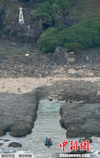 日本东京都“调查团”乘坐的包船“航洋丸”9月2日清晨开始在中国钓鱼岛附近海域展开非法调查。至当天傍晚,“调查团”将对钓鱼岛本岛、北小岛和南小岛3岛展开“调查”,晚上启程返回冲绳县石垣港。图为调查团成员乘坐橡皮艇靠近钓鱼岛。