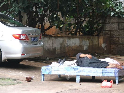 近日,笔者在海口街头看到有些市民大白天竟然在街边睡觉,路边过往车辆很多,灰尘扑鼻而来,不卫生又不安全,同时也很不雅观!