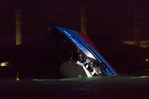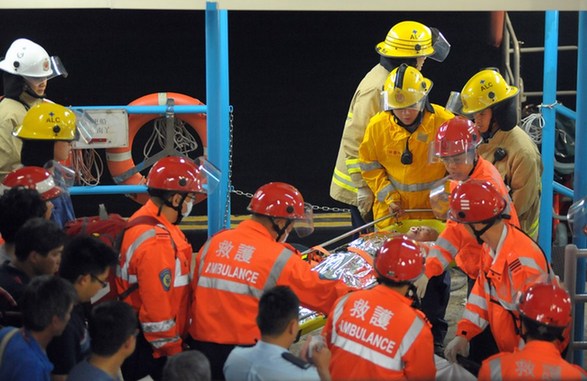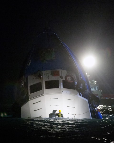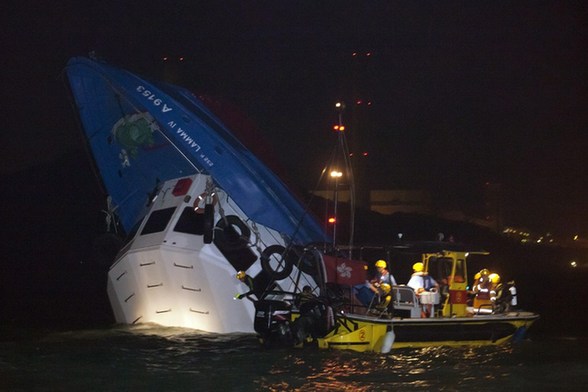 10月1日晚,香港南丫岛榕树湾附近海面被撞沉的渡轮,现场救援。