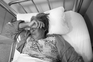 昨日,上海市崇明县第二人民医院,伤者秦女士躺在病床上哭泣。本版图片 早报记者孙湛