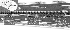 G40沪陕高速崇明段,事发现场的护栏上有血迹。