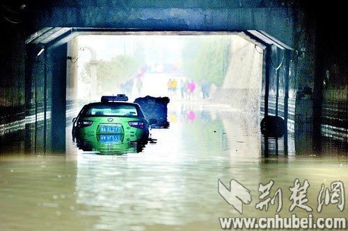 昨日(1月6日)凌晨4时10分左右,武汉常青路贺家墩铁路涵洞附近,一直径1000毫米的自来水主水管冻裂,大水喷涌而出,贺家墩铁路桥积水深达3米,引发连锁反应:地面塌陷、的士被淹、交通管制、家中停水、乘客晚点。