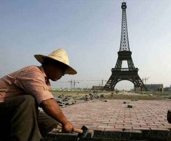 消息还称,郑州市有一处对法国“朗香教堂”的“无耻”仿建建筑,建于20世纪90年代。在遭到法国勒•柯布西耶基金会“愤怒”回应后,这座建筑已被拆除。报道称苏州还有一处对伦敦标志性建筑埃菲尔铁塔的仿建。
