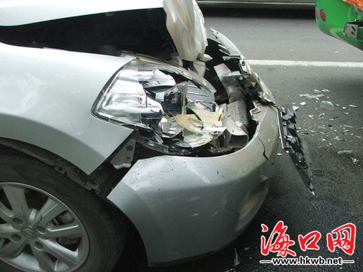 海口网网友冠海现场报道 10日下午,在红城湖路上发生一起追尾交通事故。一辆公交车被一辆小轿车追尾,小轿车瞬间“面目全非”,从现场看,并未看到小轿车有刹车痕迹,不知道什么原因导致撞车。笔者在此提醒 :司机开车的时候还是要打起十分精神,否则害人害己。