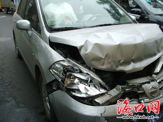 红城湖路发生追尾事故 肇事小车"面目全非"
