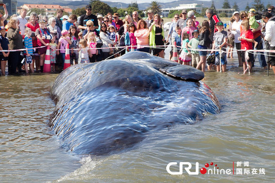 新西兰海滩惊现“深海巨兽” 数百人围观