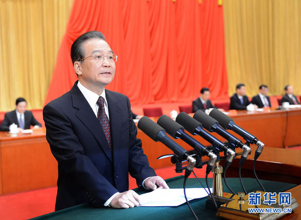 1月18日,中共中央、国务院在北京人民大会堂隆重举行国家科学技术奖励大会。胡锦涛、习近平、温家宝、李克强、刘云山出席大会并为获奖代表颁奖。这是国务院总理温家宝代表党中央、国务院在会上讲话。新华社记者刘建生摄